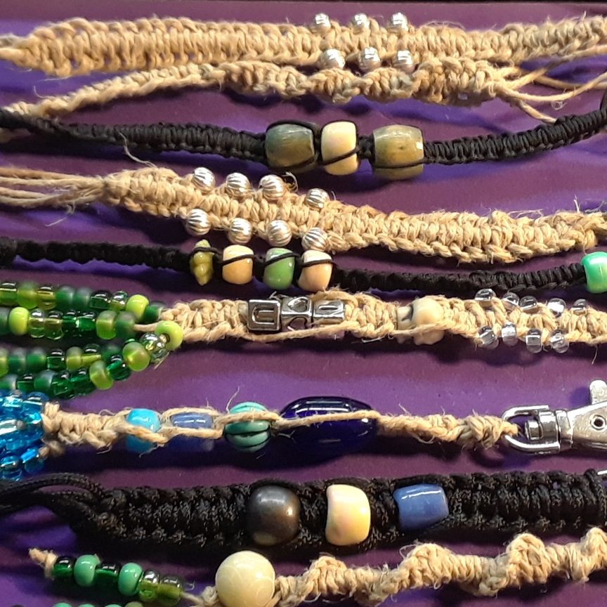 Macramé Friendship Bracelets or Keychains: Learn the square knot. cord knotting trays, and beads to create bracelets and/or key chains. 45- minute class. $25.00 per person